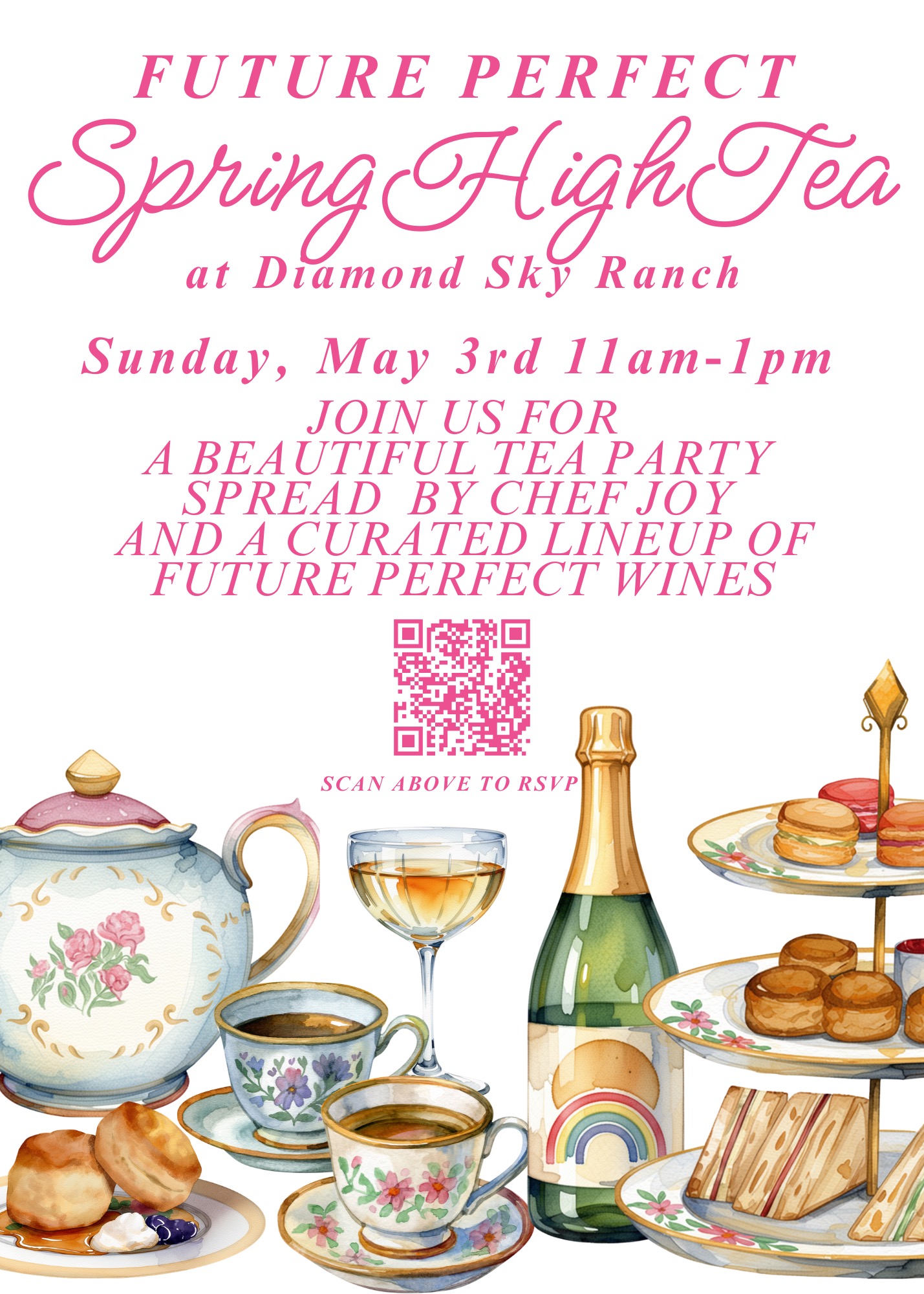 Join us for a Beautiful Tea Party with Bubbles, Bites and more at Diamond Sky Ranch!